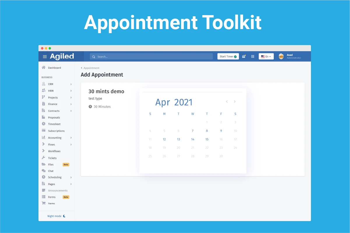 Agiled is an all-in-one, white-label ready business management platform for managing clients, leads, finance, projects, tasks, employees, and more.