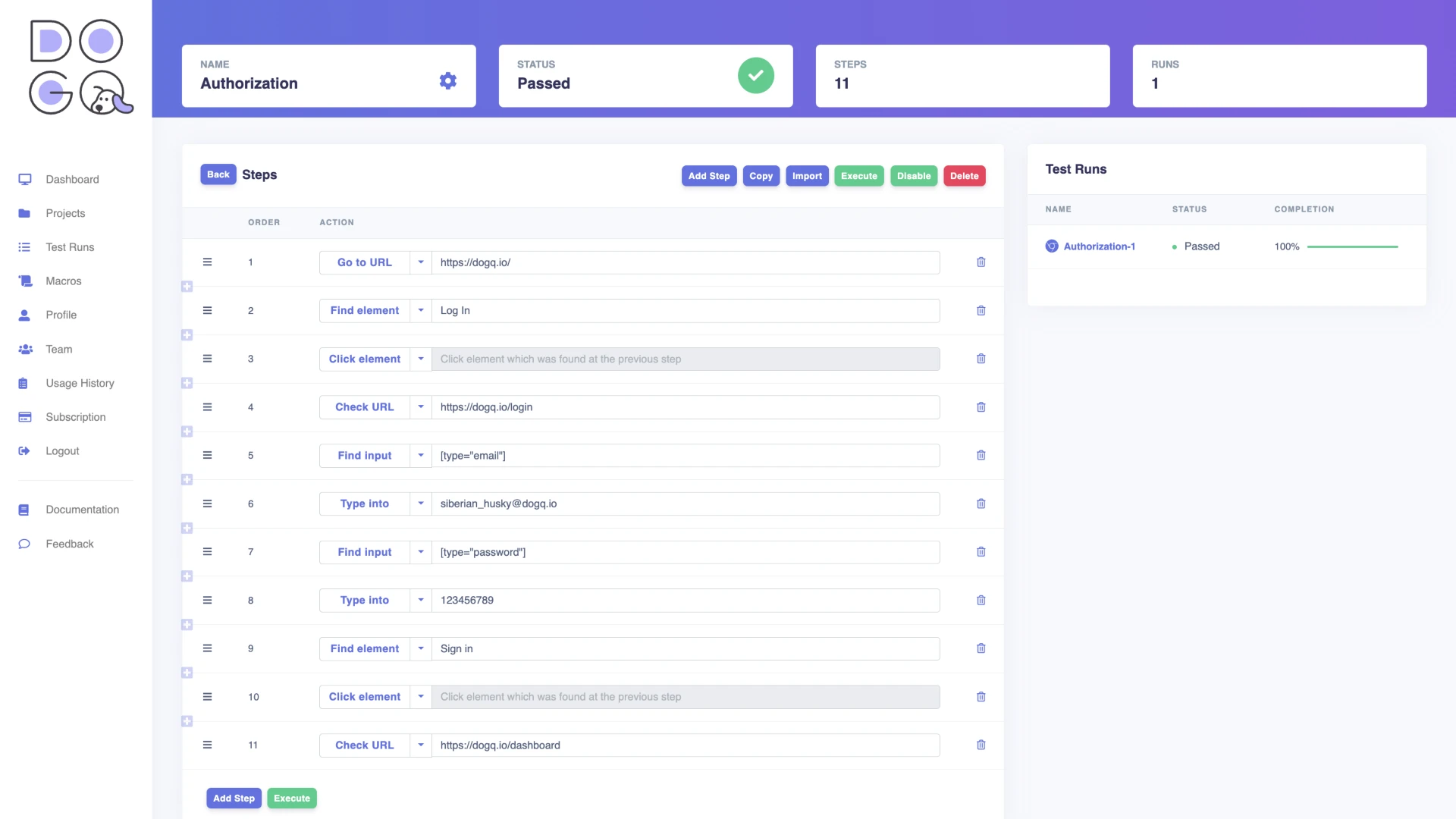 DogQ offers unlimited features for testing parallelization and macros, enabling you to test different parts of your web product.
