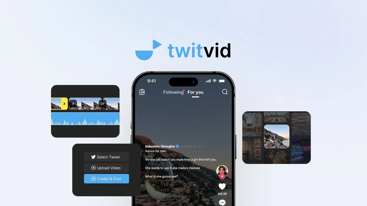 Create eye-catching videos from your tweets in just three clicks, ready to be shared on popular platforms such as TikTok, Instagram, and YouTube.